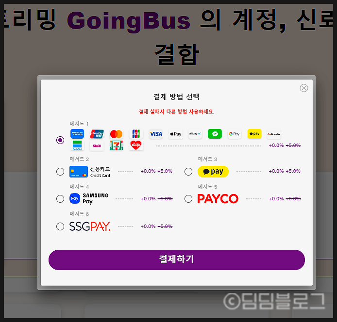 그러면 여러가지 결제 옵션이 나옵니다