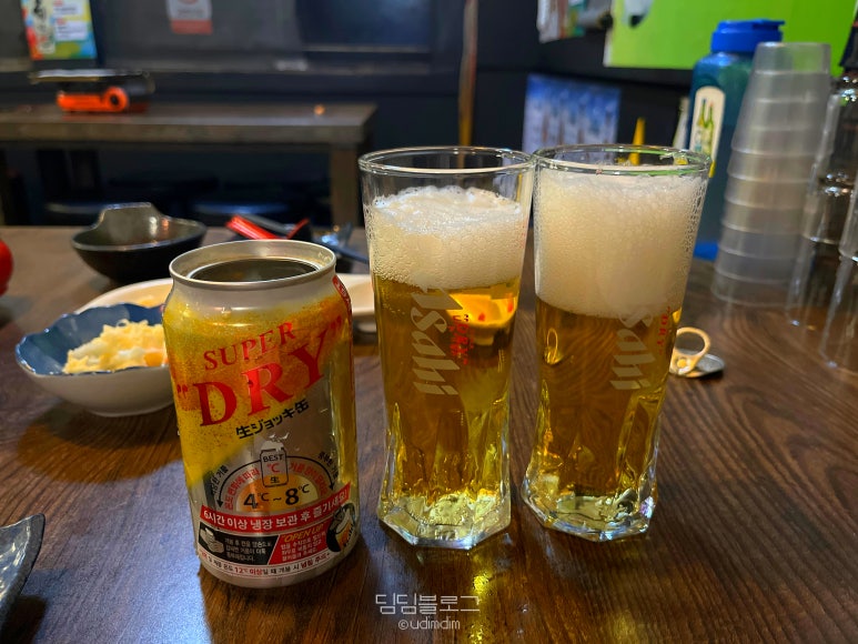 저는 우삼겹 스끼야끼랑 아사히 생캔 주문했어요