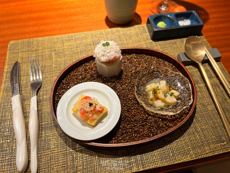 육회 타르트와 관자 등이 나왔습니다