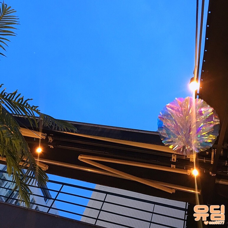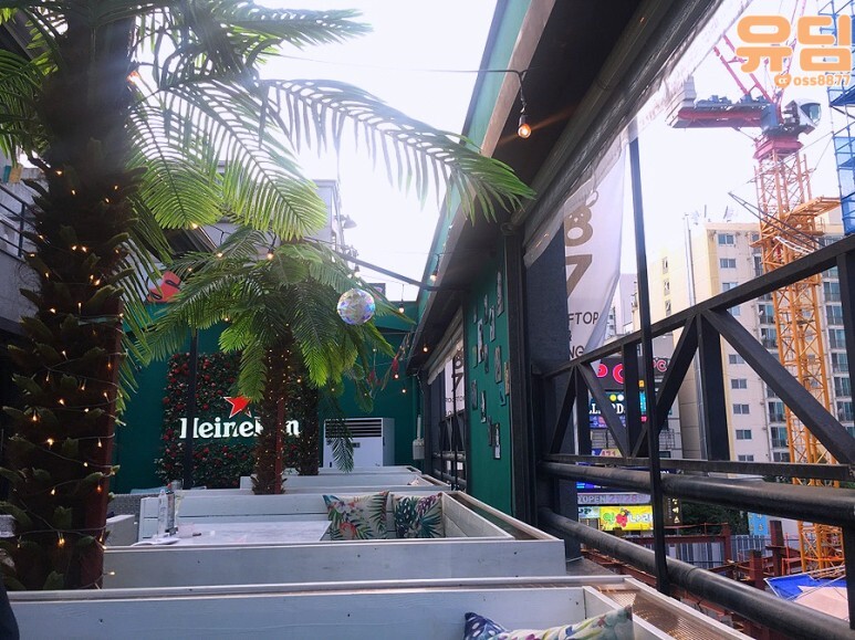 테이블 사이사이 마다 야자수나무도 놓여있어서 여름 바캉스 느낌 물씬나네요