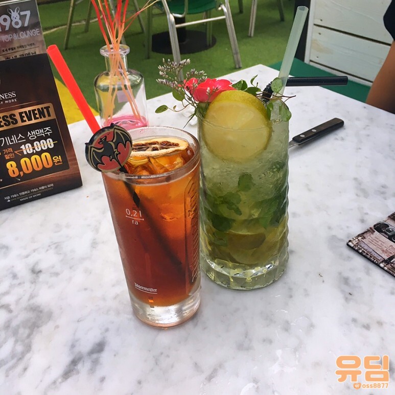 저는 소주는 잘 못 마셔서 패스 하구 칵테일 하나씩 골라줬어요.
