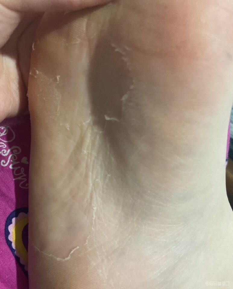 뒷꿈치는 완벽하게 벗겨지진 않았지만