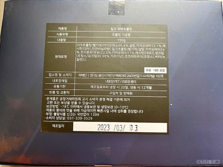 안쪽에 파베초콜릿 들이