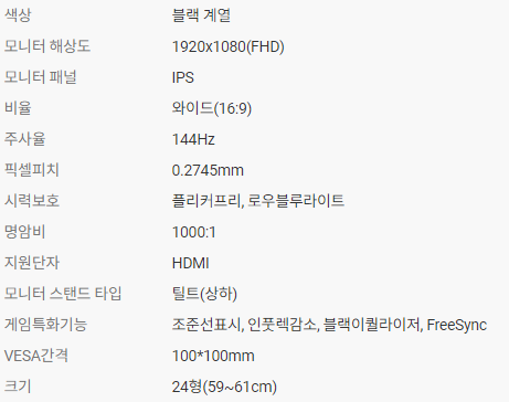 아 그리고 게이밍 모니터이기때문에 스피커내장이 되어있지 않다고 하더라구요.