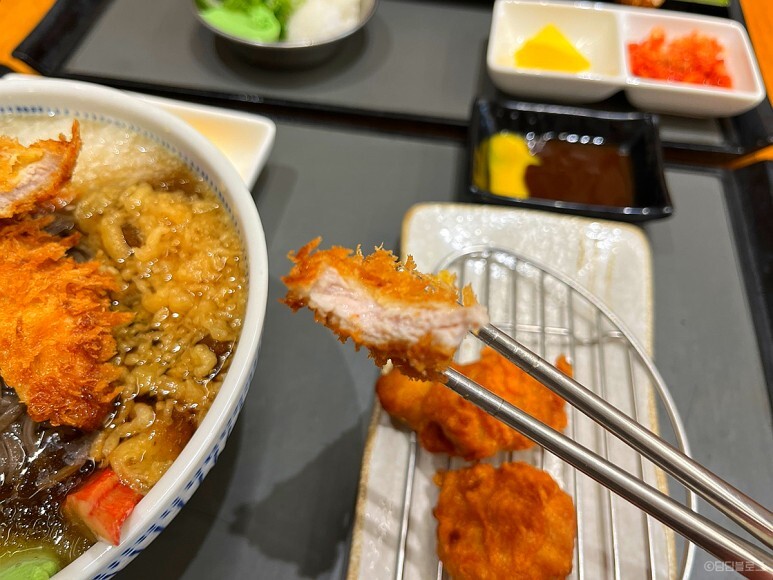 맛살과 돈가스가 올라가있어요