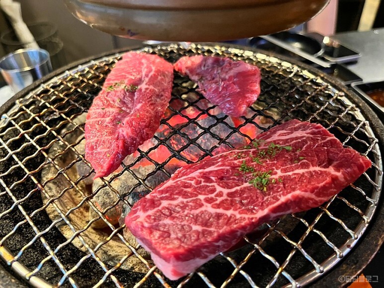 처음에는 등심과 부채살을 구웠어요