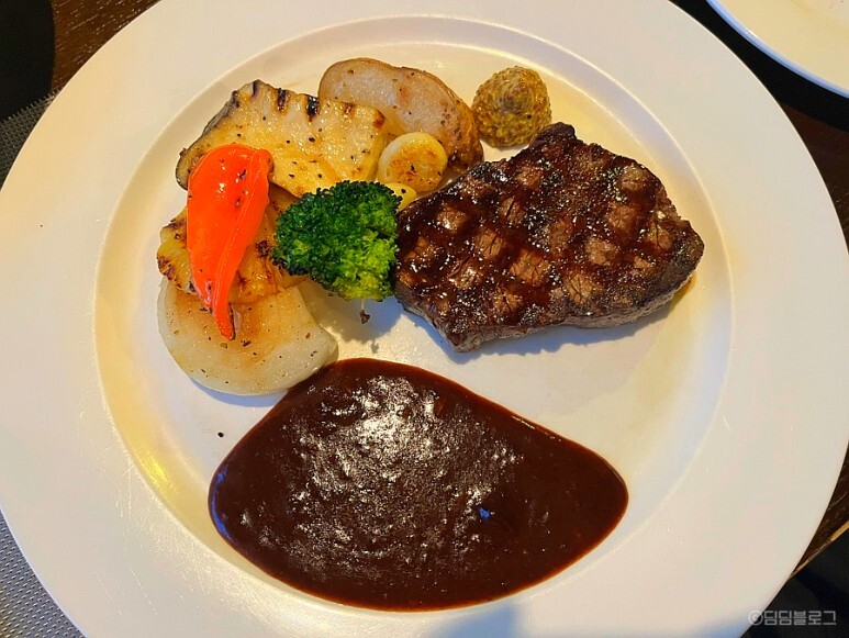 스테이크 굽기는 미디움으로 했는데