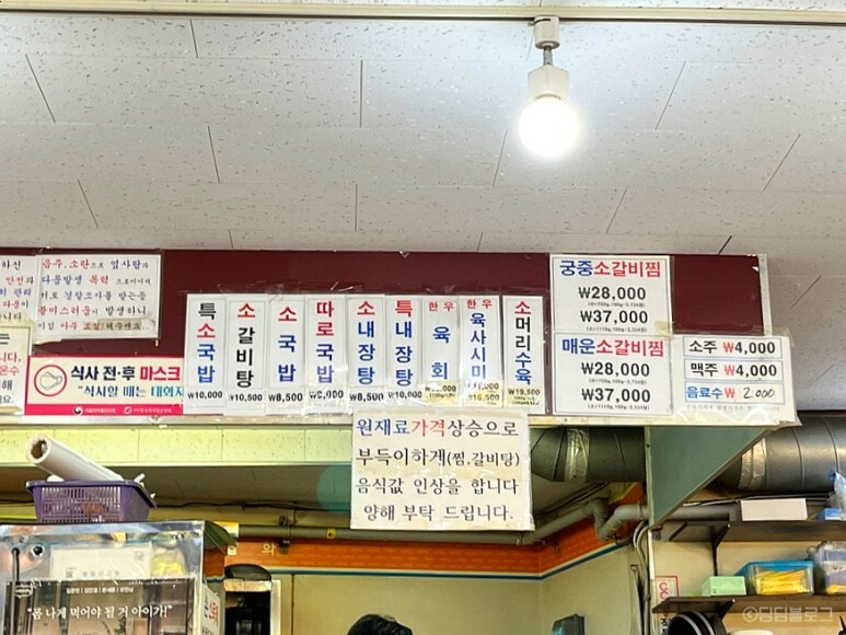 바깥에 붙어있는 가격표