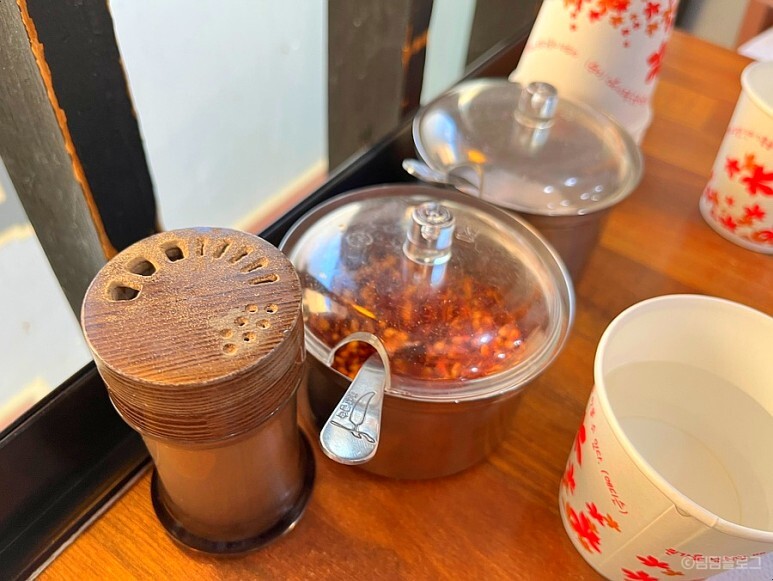 자리마다 고춧가루랑 소금 후추 있어요