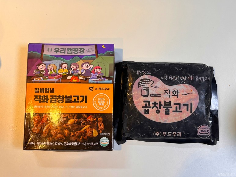 먼저 갈비양념 직화곱창불고기부터 보여드리겠습니다