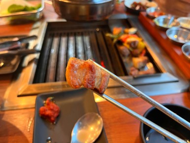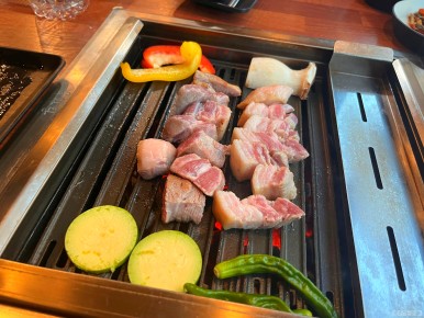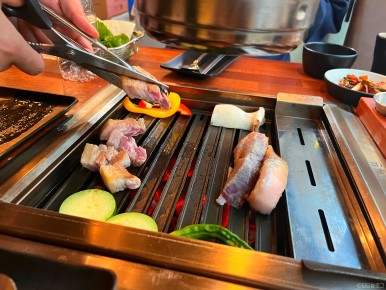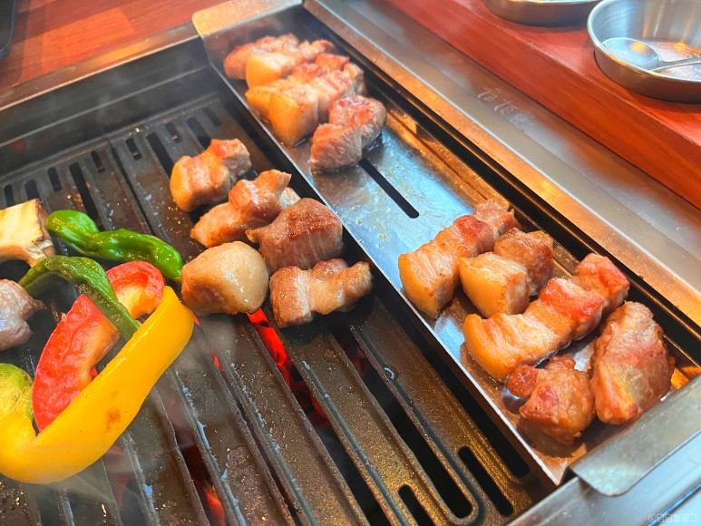 다 구워진 고기는 위쪽에 올려주셨어요