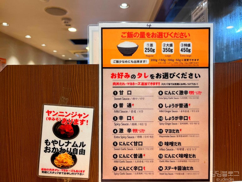 자리에도 소스와 밥양 등 설명이 붙어있어요