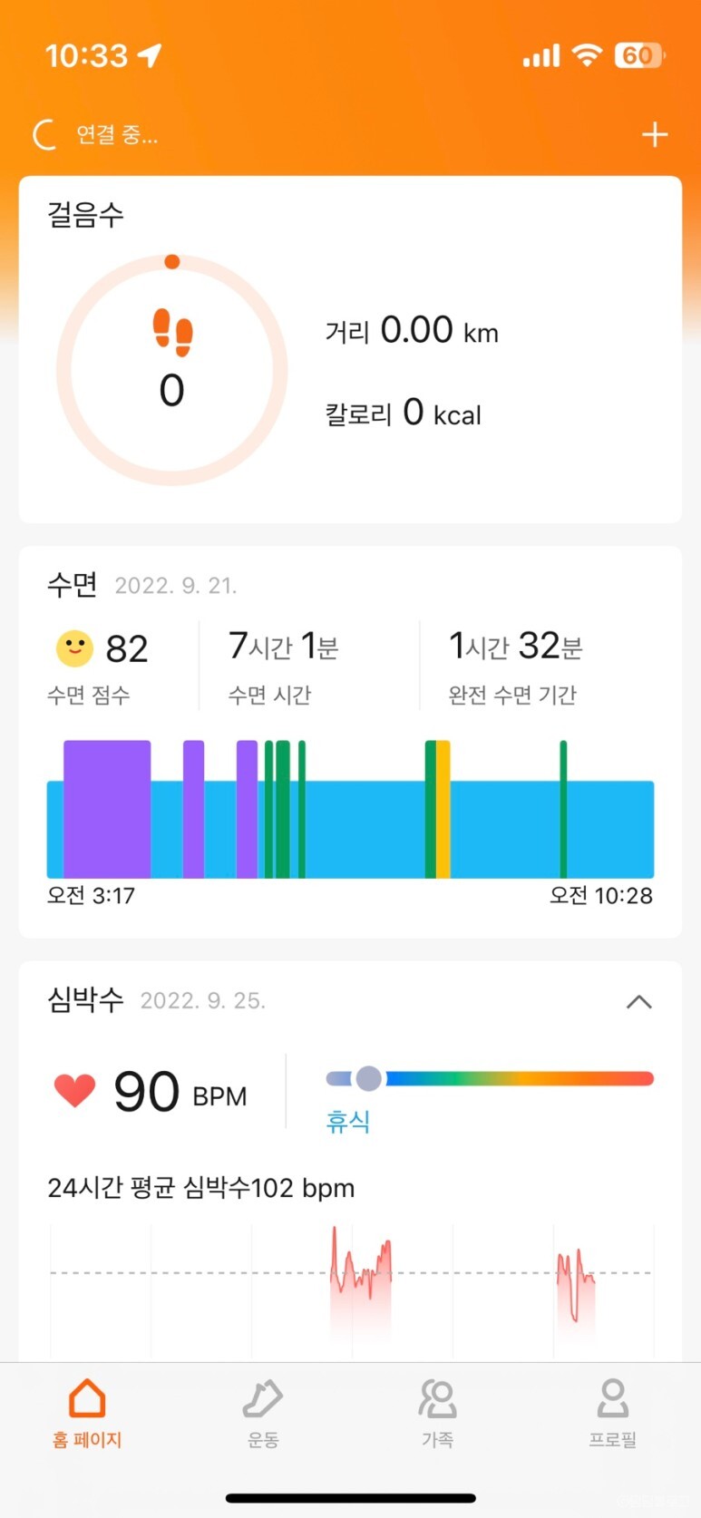 심박수랑 운동량도 확인가능해요